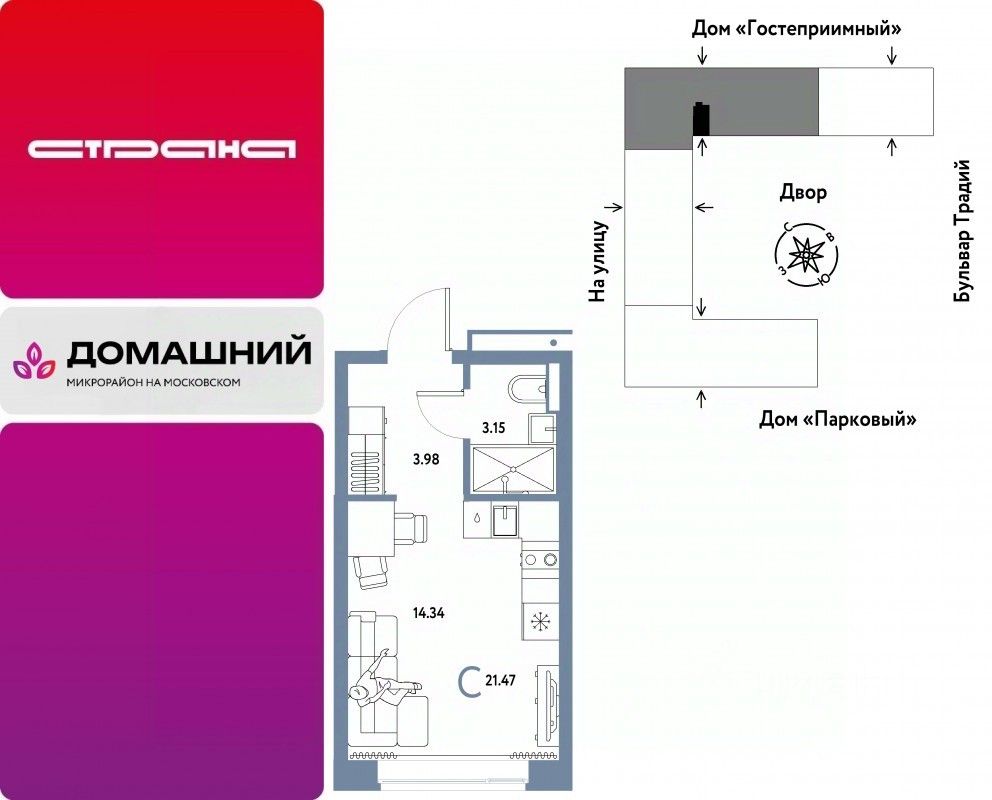 Продается 1комнатная квартира на 10 этаже от застройщика Страна Девелопмент. Площадь квартиры 21,47 кв. м.