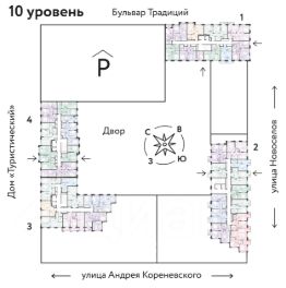 Внутри микрорайона появится огромный пешеходный бульвар — бульвар Традиций. Центром притяжения станут открытые пространства для отдыха жителей и гостей микрорайона, которые легко меняются под сезонные сценарии отдыха: новогодняя елка, ярмарки, кинопоказы и т.д.