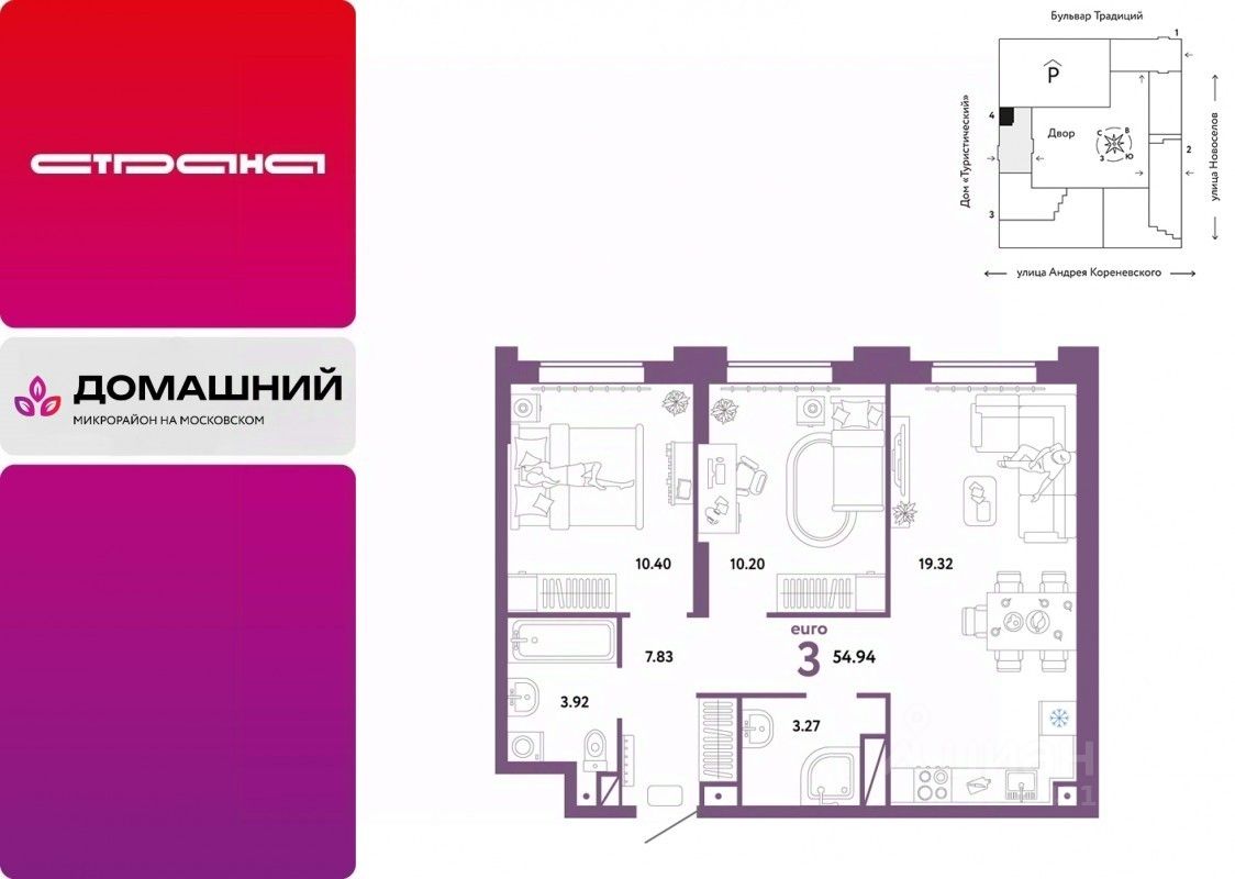 Продается 3комнатная квартира в новом микрорайоне "Домашний" в районе Московского тракта рядом с ТРЦ "Колумб". Общая площадь квартиры 54,94 кв. м. Сдача — в 4 квартале 2024 года.