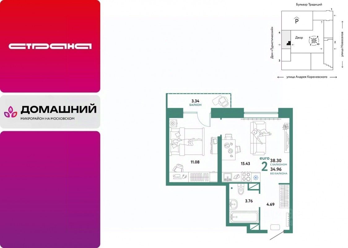 Продается 2комнатная квартира в новом микрорайоне "Домашний" в районе Московского тракта рядом с ТРЦ "Колумб". Общая площадь квартиры 38,3 кв. м. Сдача — в 4 квартале 2024 года.