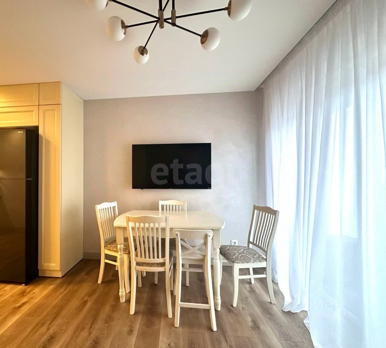 Продается однокомнатная квартира 1+ в современном жилом комплексе "Видный", ориентированная на южную сторону для максимальной инсоляции в течение дня. Объект в состоянии полной готовности к проживанию, с дизайнерским ремонтом и высококачественной отделкой. В интерьере использованы долговечные и эстетичные материалы: стены отделаны венецианской штукатуркой с эффектом шелкографии, уложена кварцвиниловая плитка, установлены натяжные тканевые потолки и надежные двери "Волховец". Кухня оснащена гарнитуром с практичной фурнитурой Blum и встроенной техникой премиальных брендов, включая духовой шкаф Siemens, посудомоечную машину Bosch и холодильник Hitachi. Для комфорта в спальной зоне установлена кровать с подъемным механизмом, а система хранения организована в современных стеклянных шкафах в спальне и прихожей. Санузел оборудован стильной душевой кабиной, дополнительно в квартире присутствуют кондиционер, стиральная и сушильная машины. ЖК комфорт-класса предлагает развитую инфраструктуру с собственной территорией, детскими и спортивными площадками, а также удобную транспортную доступность к основным магистралям города. Это решение для тех, кто ценит безупречное качество, продуманную планировку и возможность заехать в новое жилье без дополнительных вложений и хлопот.