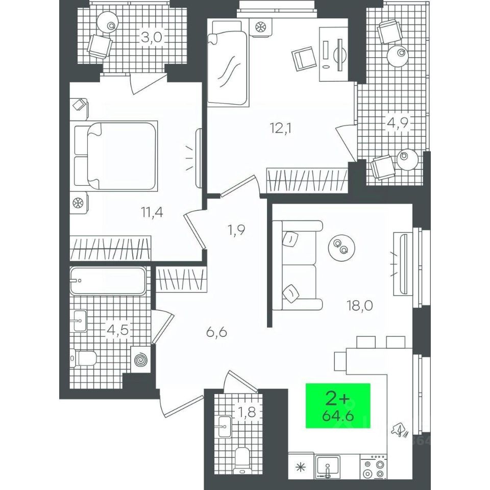 Продаётся 2-комнатная квартира в строящемся доме (В5.3 (Малкова, 19)), срок сдачи: III-кв. 2026, общей площадью 64.62 кв.м., на 8 этаже. Компания 4D приступила к строительству нового жилого комплекса "Гранд квартал". Новый ЖК находится в зеленой зоне Калининского района, южнее микрорайона Тюменская слобода.