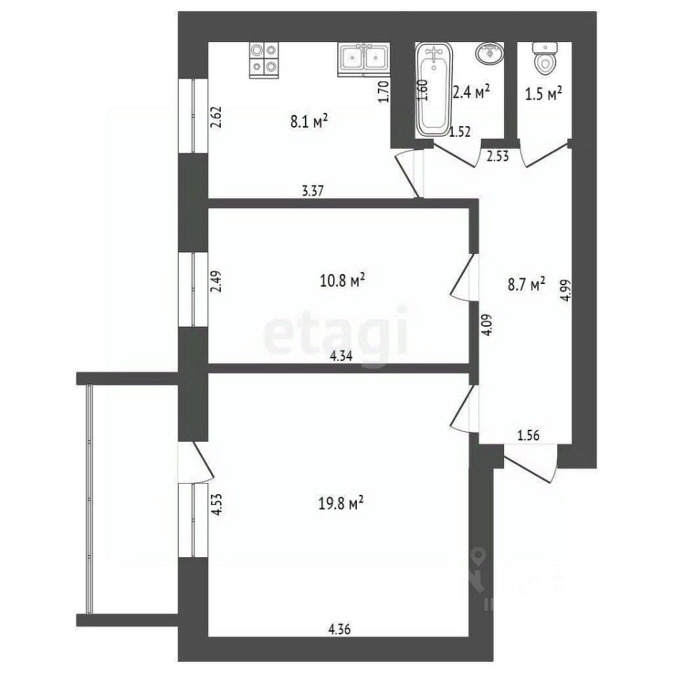 Предлагается к продаже уютная 2-комнатная квартира, расположенная по адресу: Центральная улица, дом 6, квартира 17, п. Кировский, Исетский район.