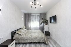 Ламинат на полу, светлые и гармоничные обои во всех комнатах, декоративное настенное освещение создает ещё больший уют.