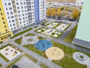 Полностью сформированный микрорайон: лицей, школы, детские сады, поликлиника, прогулочные зоны. Круглосуточное видеонаблюдение для вашей безопасности. В самом комплексе функционируют коммерческие помещения под магазины, аптеки и фитнес-центр. Для жителей предусмотрен наземный паркинг на 1013 мест.