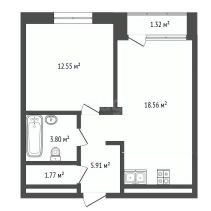 Продается однокомнатная квартира площадью 42.59 м² на 12 этаже 16-этажного современного жилого комплекса на берегу реки Туры.
