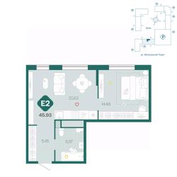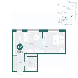 Однокомнатная квартира с большой кухней-гостиной, в которой два окна, спальней и вместительной ванной комнатой. В прихожей ниша под шкаф. Подойдет для молодой семьи.