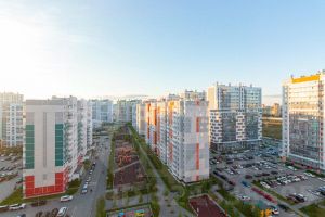 Новый микрорайон с ухоженными дворами, новой школой во дворе, рядом поликлиники, фитнесклубы и ТЦ "Остров". Рынок "Михайловский" с фермерскими продуктами в пешей доступности. Широкие тротуары и велодорожки — удобно для прогулок и спорта