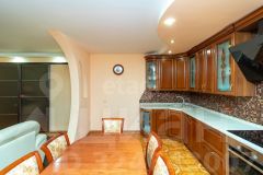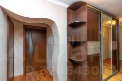 Установлен встроенный шкаф-купе, в квартире много мест хранения. Кухня из натурального дерева со встроенной техникой.