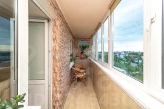 На просторном утепленном балконе установлен тройной стеклопакет, теплый пол.