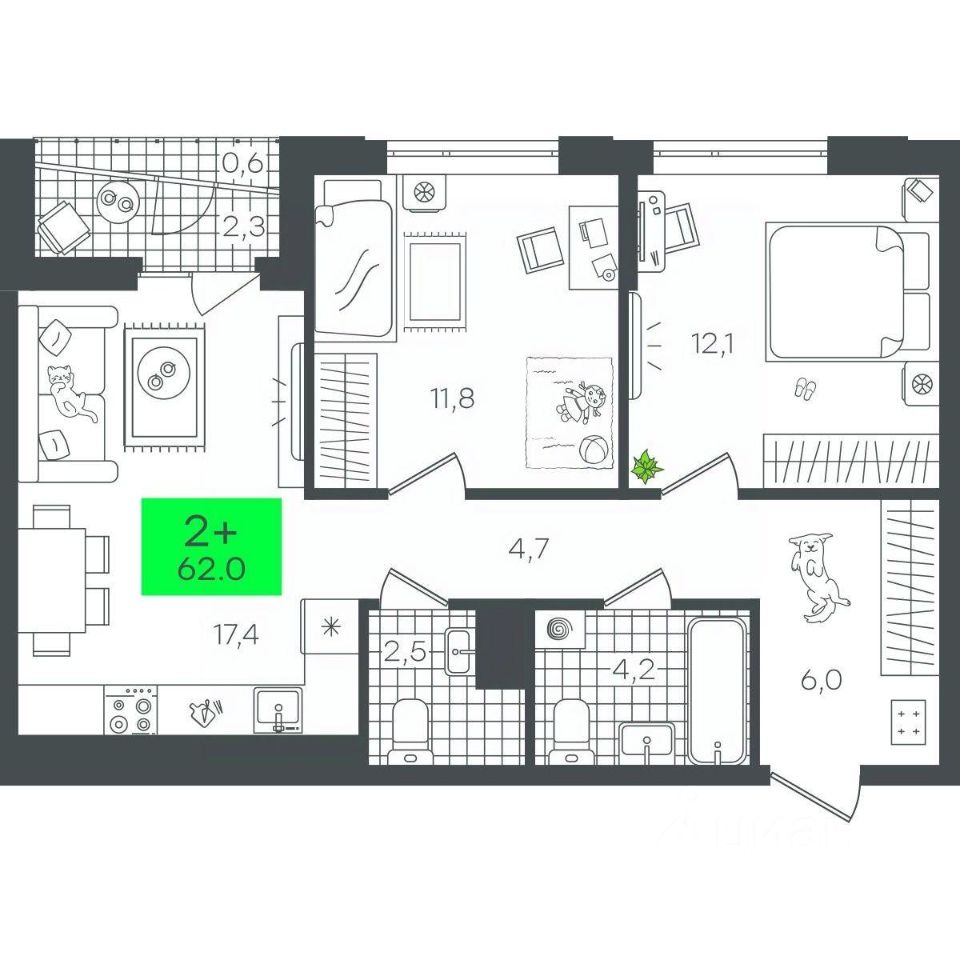 Продаётся 2-комнатная квартира в строящемся доме (1-Д3.1 (Глебова, 10)), срок сдачи: III-кв. 2026, общей площадью 62.02 кв.м., на 7 этаже. Компания 4D приступила к строительству нового жилого комплекса "Гранд квартал". Новый ЖК находится в зеленой зоне Калининского района, южнее микрорайона Тюменская слобода.