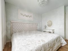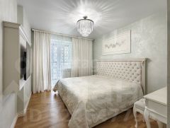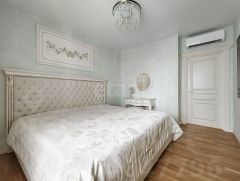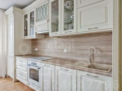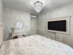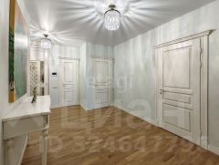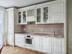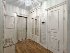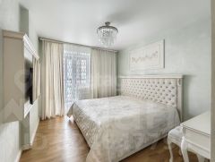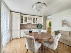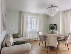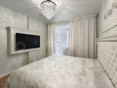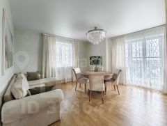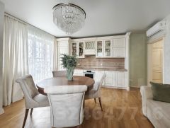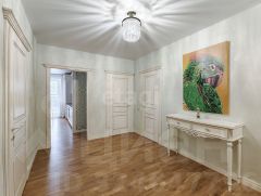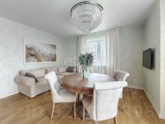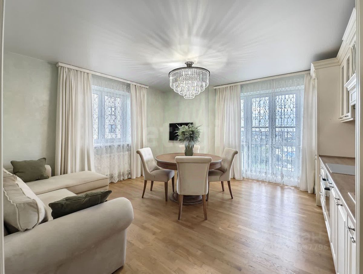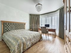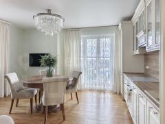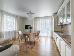 Из панорамных окон открывается впечатляющий вид на город, наполняя пространство светом. Планировка функциональна и продумана, обеспечивая комфортное проживание. Отделка выполнена в классическом стиле с использованием натуральных и дорогих материалов, создающих атмосферу сдержанной элегантности и долговечности. В интерьере присутствует мебель из массива ценных пород древесины от фабрики "Самеба", а также встроенная бытовая техника Bosch.
