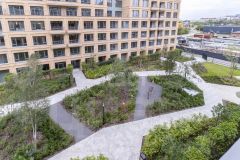 Проектом предусмотрено 137 квартир, двор закрыт для машин. Около 70% его территории занимает зелень. Все подъезды в домах сквозные, с прозрачными входными группами, расположенными на уровне земли. Интерьеры холлов выполнены в стиле современного модернизма, в отделке и декоре преобладают натуральные, "пепельные" цвета и плавные линии, воссоздающие атмосферу домашнего уюта.