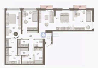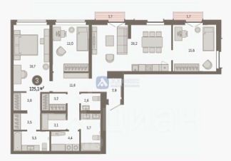 Квартира расположена на 3 этаже 16-этажного дома, общей площадью 125.10 кв.м. с кухней 23.58 кв.м. В данный момент проводится черновая отделка, что дает возможность новым владельцам самим воплотить свои дизайнерские идеи и создать уютное пространство по своему вкусу.