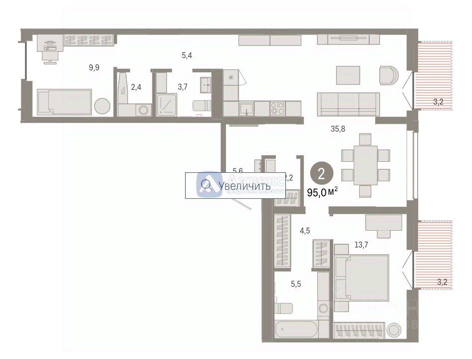 Продается уютная и просторная квартира в новом доме на 6 этаже 9-этажного здания. Площадь квартиры составляет 94.45 кв.м., из них 22.6 кв.м. приходится на кухню.