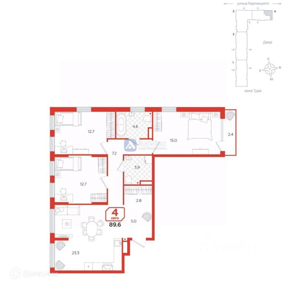В нашем новом доме на 8 этаже продаётся квартира площадью 89.60 кв.м. с 4 комнатами. Кухня занимает площадь в 23.3 кв.м., что делает пространство очень удобным и комфортным.