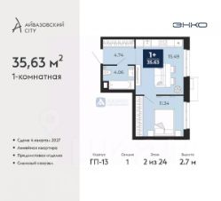 Квартира расположена на 2 этаже 24-этажного дома, что обеспечивает прекрасный вид из окон. Площадь квартиры 35.63 кв.м., что идеально подойдет для одного человека или молодой пары.