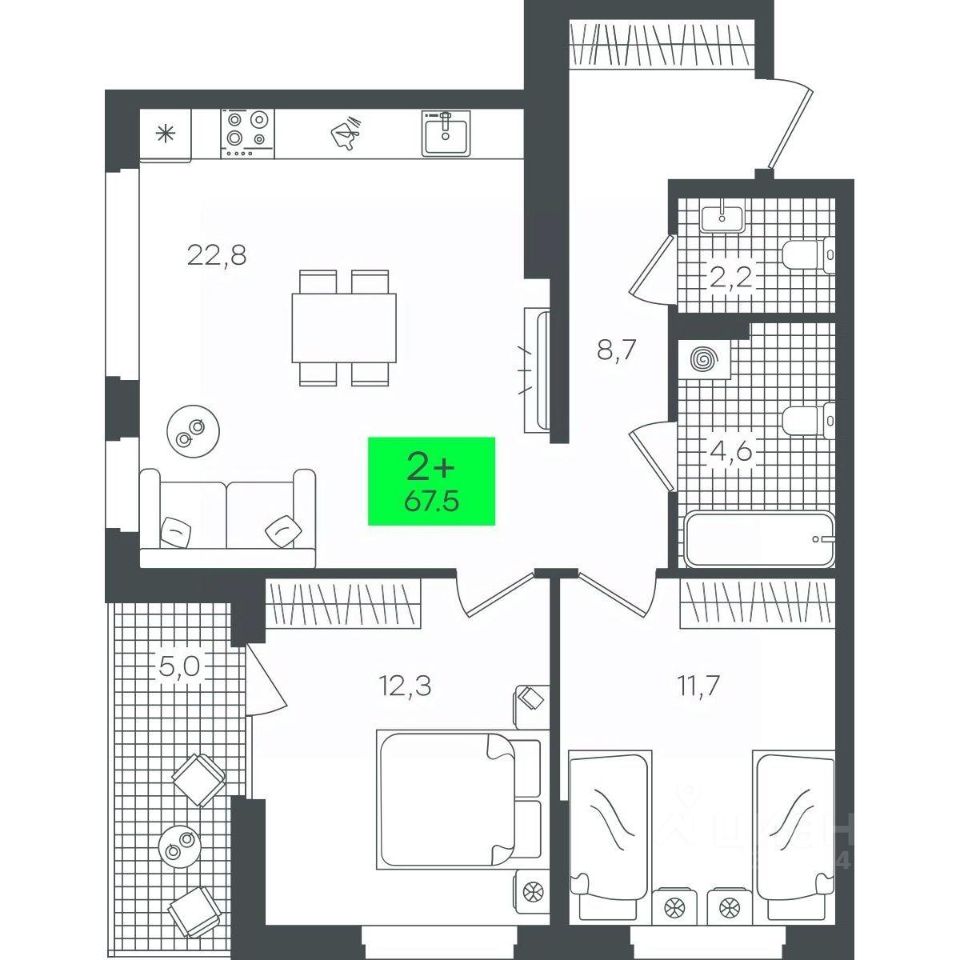 Продаётся 2-комнатная квартира в строящемся доме (В5.4 (Малкова, 19)), срок сдачи: III-кв. 2026, общей площадью 67.56 кв.м., на 6 этаже. Компания 4D приступила к строительству нового жилого комплекса "Гранд квартал". Новый ЖК находится в зеленой зоне Калининского района, южнее микрорайона Тюменская слобода.