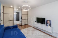 - Просторную комнату украшает вместительный встроенный шкаф-купе, мягкий удобный диван -трансформер, функциональная тумба и современный кондиционер для поддержания приятного микроклимата.