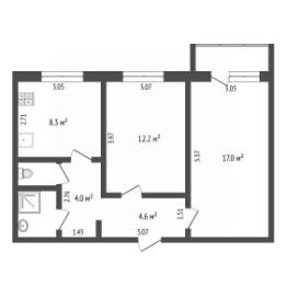 Две изолированные комнаты, одна разделена нишей — удобно выделить спальню и рабочее место