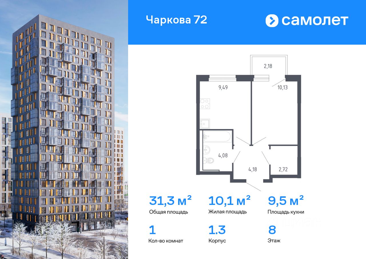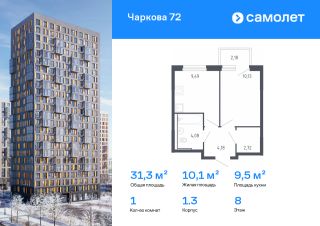 Строим кварталы для жизни с заботой о будущем. Предлагается 1-комнатная квартира комфорт-класса 31,25 кв.м в корпусе 1.3 на 8 этаже, в ЖК "Чаркова 72"
