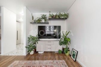 • Современный интерьер: Оформление в светлых тонах, качественный ламинат под темное дерево и практичная плитка в прихожей и санузле.