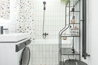 • Совмещенный санузел с стиральной машиной и полотенцесушителем.