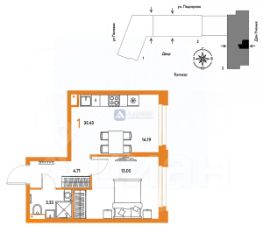 Продается 1комнатная квартира на 9 этаже от застройщика Страна Девелопмент.