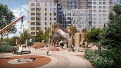 - Во дворах нет машин, шума, выхлопных газов и посторонних людей. Всё пространство разделено на зоны по интересам и возрастам. Для детей — игровые площадки из эко-материалов и мягкая защита от падений. Для взрослых — зоны отдыха, воркаут-площадки и тропинки для неспешных прогулок.