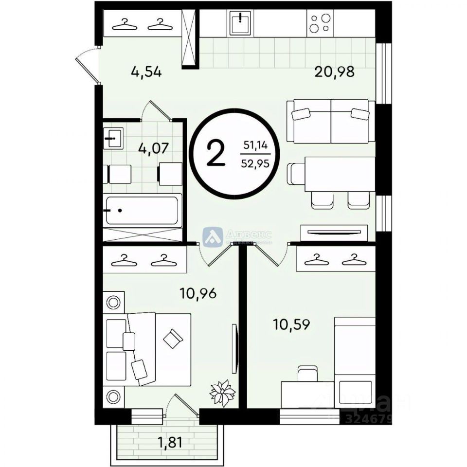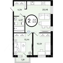 Предлагается к продаже эргономичная 2-комнатная квартира в новостройке жилого комплекса Зеленые аллеи. Площадь квартиры составляет 52,95 кв.м. Представленное жилье находится на четвертом этаже. Квартира имеет две изолированные комнаты правильной геометрической формы площадью 10,59 кв.м. и 10,96 кв.м., кухню-гостиную площадью 20,98 кв.м., которая станет центром притяжения для всех членов вашей семьи. Планировка квартиры предусматривает просторную прихожую с нишей для размещения шкафа-купе, вместительный совмещенный санузел и лоджию, на которой вы будете любоваться рассветами и закатами с чашечкой ароматного кофе.