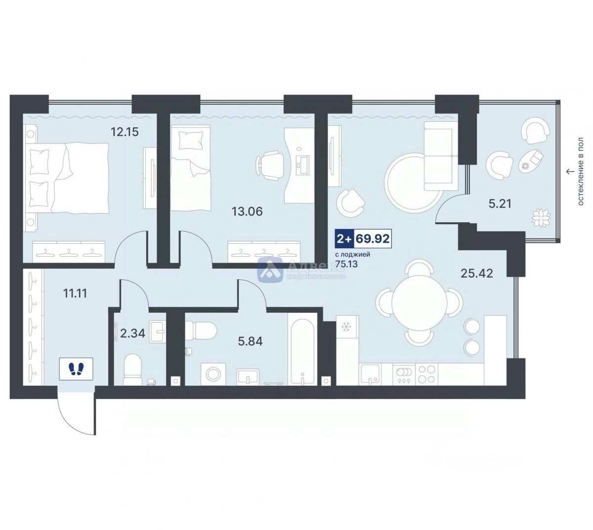 Квартира новостройка с двумя комнатами на 15 этаже 21-этажного дома общей площадью 69.92 кв.м. Кухня занимает 25.42 кв.м. Помимо просторных комнат и удобных планировок, квартира предлагает своим жильцам уют и комфорт.