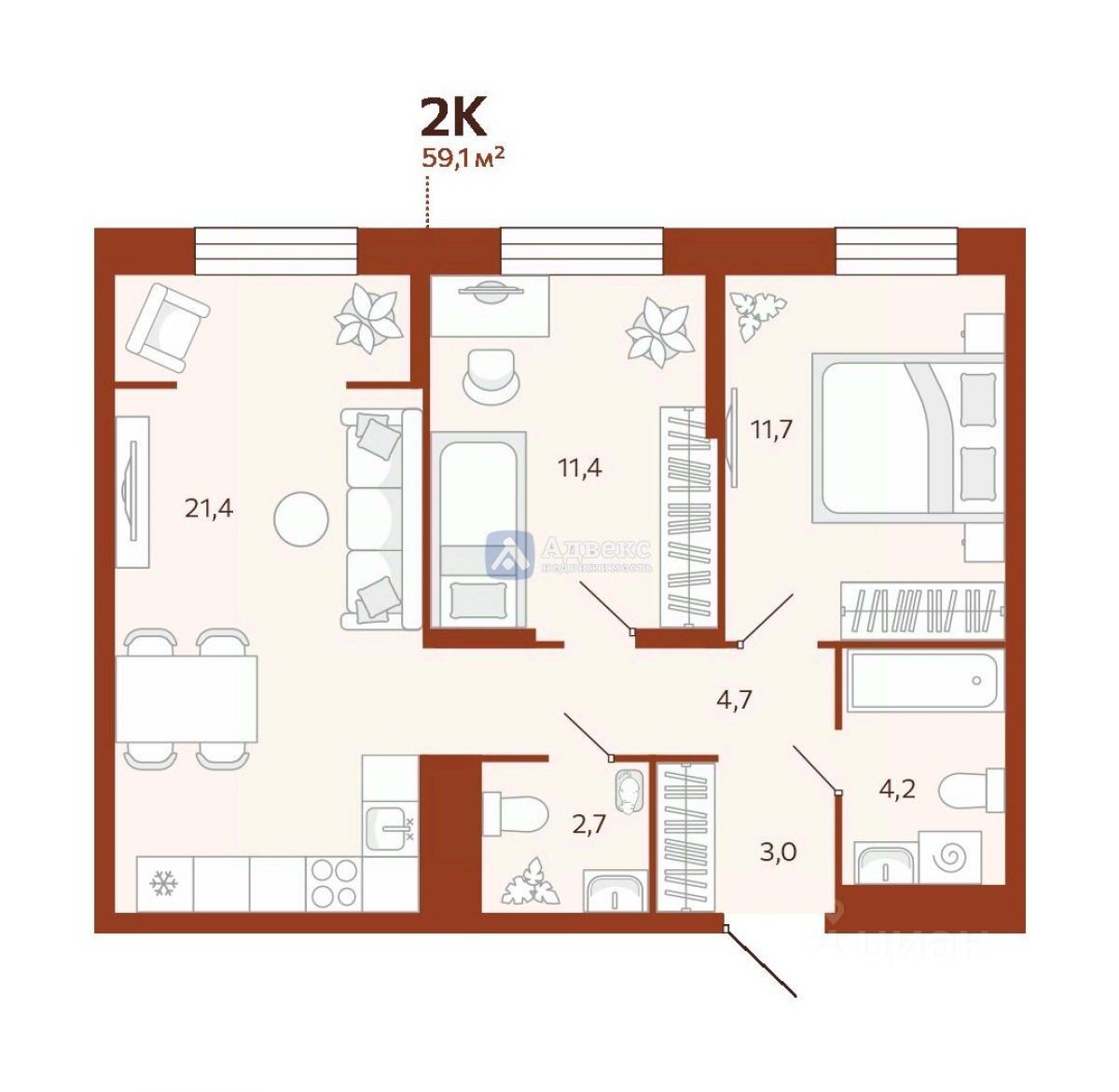 Уютный комплекс современных квартир ждет своих новых владельцев! Продается 2-комнатная квартира в новостройке площадью 59.06 кв.м. с просторной кухней 21.4 кв.м. Это идеальный вариант для тех, кому важен комфорт и удобство.