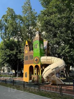 Во дворе большая парковка для авто и современная детская площадка. Много зелени и деревьев.
