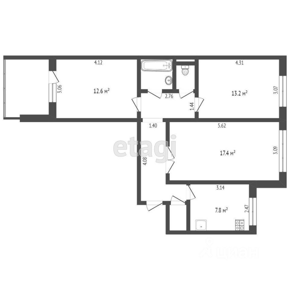 • Удобная планировка: Три изолированные комнаты обеспечивают комфорт и приватность для всей семьи, а кухня площадью 9 кв. м станет идеальным местом для семейных обедов и встреч с друзьями.