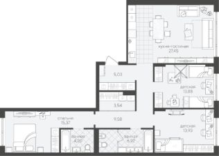 Просторная трёхкомнатная квартира 99.9 кв.м на 2 этаже с продуманной планировкой. Функциональная кухня-гостиная, три отдельные спальни и удобные зоны для хранения создают условия для комфортной и гармоничной жизни.