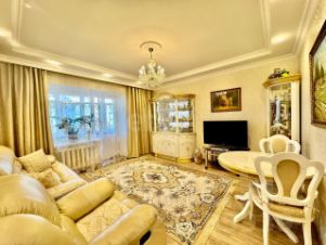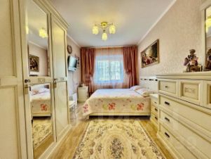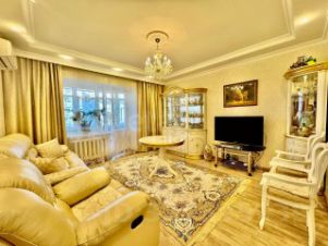 Трёхкомнатная квартира площадью 78 м² расположена в кирпичном доме 2003 года постройки, возведённом для персонала администрации, что обеспечило повышенное качество строительства и продуманные инженерные решения. Дом отличается высокой шумоизоляцией и долговечностью материалов. На этаже всего две квартиры, что гарантирует минимум соседей и максимум приватности. Высота потолков 2,9 м создаёт ощущение простора, а натуральные отделочные материалы — дубовый паркет, деревянные подоконники, гипсокартонные потолки и качественные обои — формируют тёплую и стильную атмосферу. Санузел оборудован итальянским санфаянсом, а кухня оснащена немецкой встроенной техникой Bosch, которая остаётся в квартире. Кухонный гарнитур из массива дерева дополнен пятиступенчатым фильтром для воды. Вся мебель — импортного производства, из натуральных материалов, передаётся новому владельцу, что позволяет заселиться сразу после покупки.