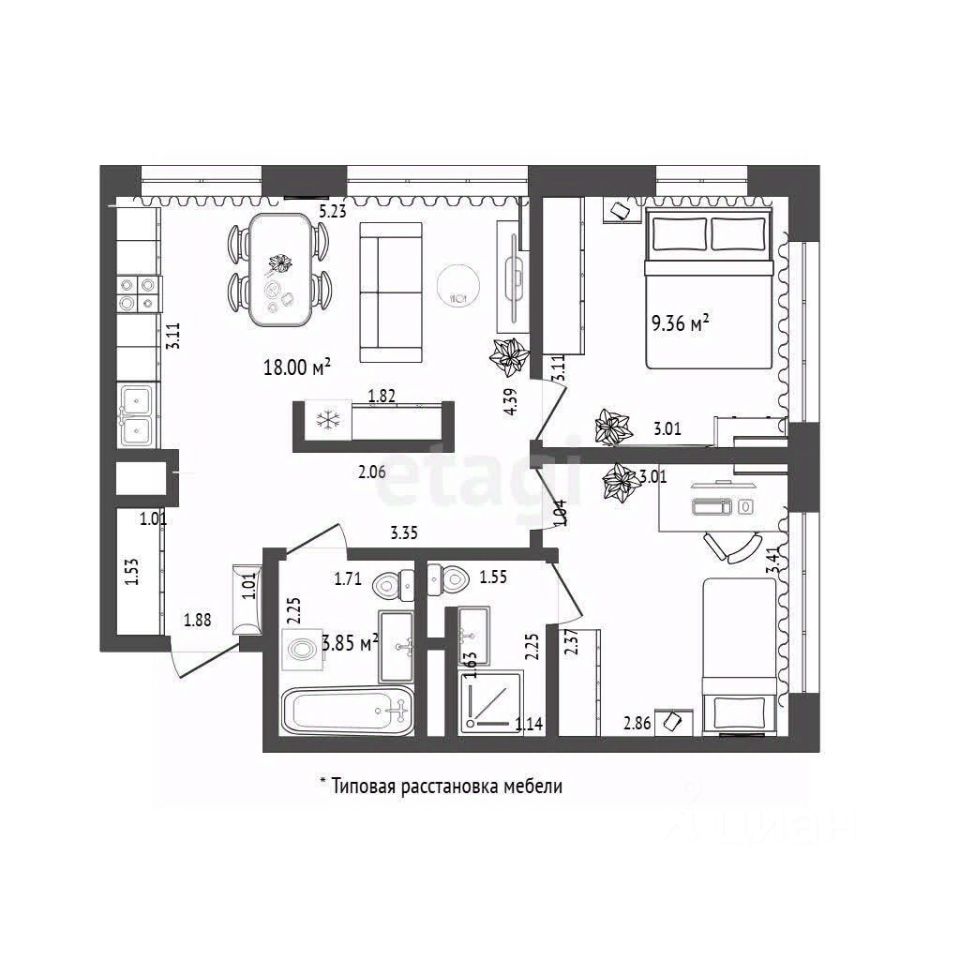 Общая площадь49,6 м²