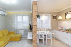 Продается современная квартира формата 1+ с продуманной и комфортной планировкой и застекленным балконом и теплыми полами. Ключевым преимуществом является просторная кухня-гостиная площадью 20 кв. мс двумя окнами, которая формирует единое светлое пространство для жизни, приема гостей и отдыха. Выполнен качественный ремонт с использованием долговечных материалов, обеспечивающий возможность заселения без дополнительных вложений. В полной комплектации остается функциональная кухня: гарнитур, встраиваемая варочная панель, духовой штаб, вытяжка и посудомоечная машина, кондиционер, остальная мебель и техника по договоренности. Объект расположен в развитом и самодостаточном районе с полным набором социальной и коммерческой инфраструктуры в шаговой доступности: детские сады 141 и 146, средняя школа 65, Поликлиника 17, гипермаркет "Лента" и теннисный центр "Лидер". При этом район отличается отличной транспортной связью — дорога до центра города на автомобиле занимает порядка 15 минут. Это предложение оптимально сочетает уют современного жилья, готового к проживанию, и практичные преимущества локации, где все необходимое для повседневной жизни находится рядом.