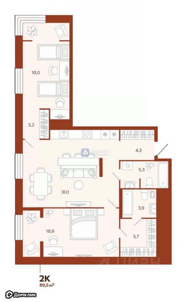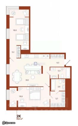 Продаётся новостройка в центре города с двумя комнатами и общей площадью 89.50 кв.м. Квартира имеет просторную кухню площадью 30 кв.м., что делает жилье идеальным для больших семей и тех, кому важен комфорт и удобство.