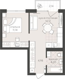 Однокомнатная квартира 36.58 кв.м на 4 этаже с просторной кухней-гостиной. Здесь легко создать уютное пространство для встреч, а отдельная спальня обеспечивает комфорт и личное пространство..