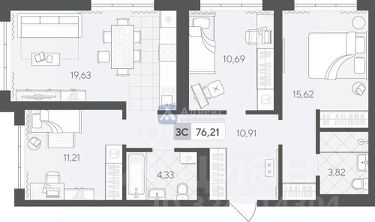 Продается уютная квартира в новом жилом комплексе, расположенном всего в 15 минутах от центра города. Трехкомнатная квартира на 4 этаже имеет площадь 76.21 кв.м. и просторную кухню 19.6 кв.м.