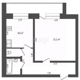 Просторная квартира 1 комн.квартира с экономной коммуналкой без отключений воды летом !
