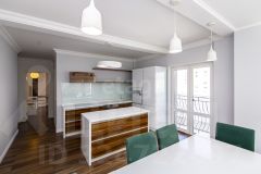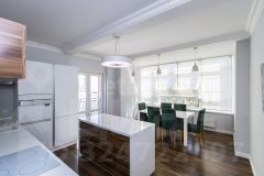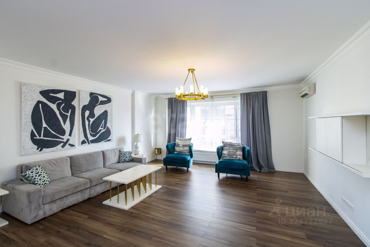 квартиры позволяет удобно проживать большой семье, где для каждого найдется излюбленное место. Гостиная площадью 31 кв.м., является центром притяжения. Кухня выполнена из качественных материалов с яркими интерьерными акцентами в виде изумрудных стульев, обрамляющих белоснежный стол. Также в квартире предусмотрены две спальни и два санузла,которые позволяют экономить время при утренних сборах семьи. Квартира полностью меблирована (отсутствует кровать в спальне и телевизор в гостиной комнате). Показ в любое удобное для вас время!