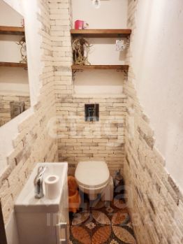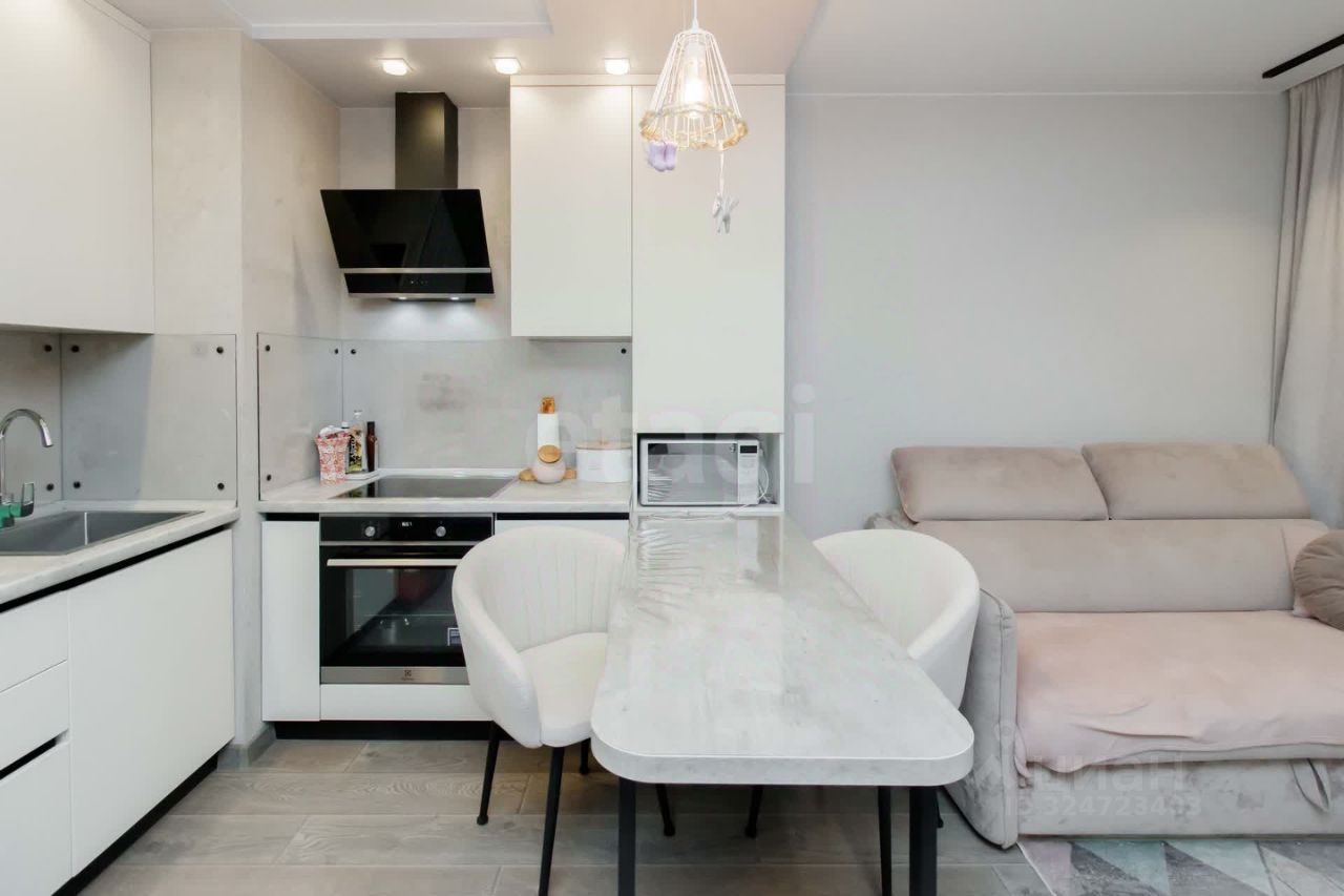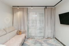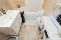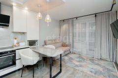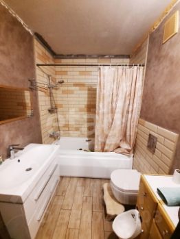 Квартира располагает просторным санузлом, отделанным качественной плиткой светлых тонов, и застеклённым балконом. Пространство наполнено светом и эстетикой, что делает его особенно привлекательным для жизни.