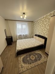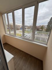 В квартире выполнен современный ремонт: на полу в кухне и прихожей керамогранит, в комнатах линолеум, потолки во всей квартире натяжные, стены ровные, полы ровные, косметический ремонт весь обновлен. Окна пластиковые, все радиаторы заменены. С коммуникациями тоже полный порядок. Вся мебель на фото остается.