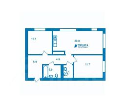 Удобная планировка: просторная прихожая, кухня-гостиная 20 м², две комнаты правильной формы, два санузла.