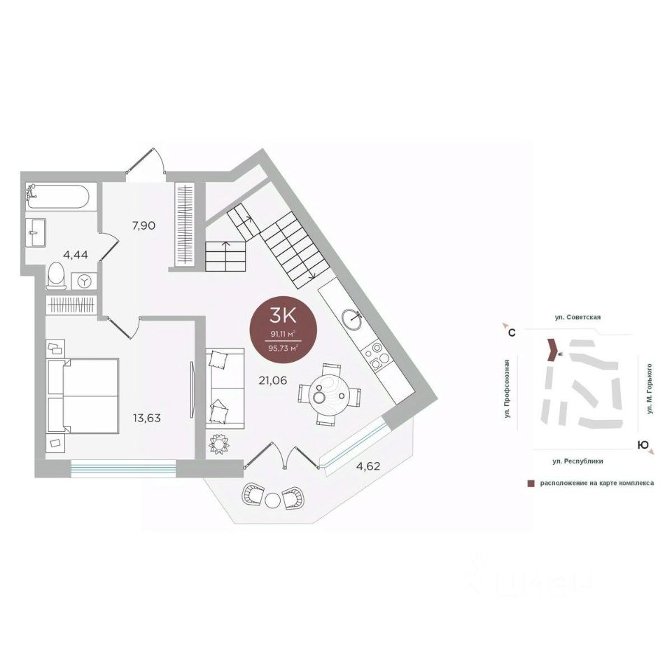 Территория квартала - это квадрат улиц Профсоюзная-Республики-Советская-М.Горького. Застройщиком спроектированы квартиры от студий до четырехкомнатных, общей площадью от 29.6 до 146.3 кв. м. Дома сдаются в предчистовой отделке.