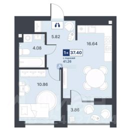 Предлагается к продаже однокомнатная квартира в новостройке, на 15 этаже 21-этажного дома. Общая площадь квартиры составляет 37.40 кв.м., кухня занимает 16.64 кв.м.