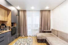 Квартира опрятная, комфортная с новым современным ремонтом, новой мебелью и техникой, ремонт выполнен из высококачественных отделочных материалов .Напольное покрытие ламинат ,на стенах - обои, во всех помещениях качественные натяжные потолки с точечными светильниками .В санузле керамическая плитка. Для удобства и безопасности все розетки по периметру квартиры смонтированы на высоте 0,3 м от пола, выключатели 0,9 м от пола; радиаторы отопления оснащены терморегуляторами, что позволяет задать комфортную температуру помещения и экономить на коммунальных платежах.