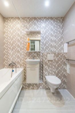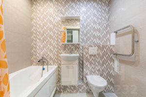 Внутренняя отделка выполнена качественно: стены оклеены обоями, полы и ванна облицованы керамогранитом. Установлены теплый пол, водонагреватель и инсталляция.